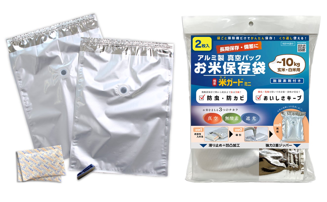 弊社製品、アルミ製真空パック お米保存袋「極厚 米ガード」から、10kgタイプが新登場です。